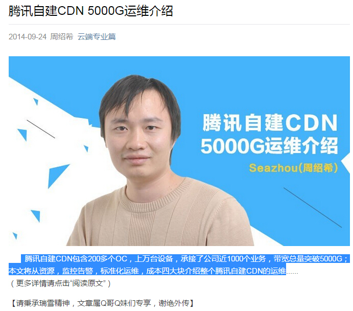 腾讯自建CDN包含200多个OC,上万台设备,承接了公司近1000个业务,带宽总量突破5000G;本文将从资源,监控告警,标准化运维,成本四大块介绍整个腾讯自建CDN的运维