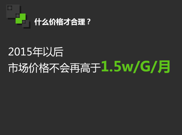 2015年之后,CDN的市场价格不会再高于1.5万/G/月,这是一个比较合理的价格。