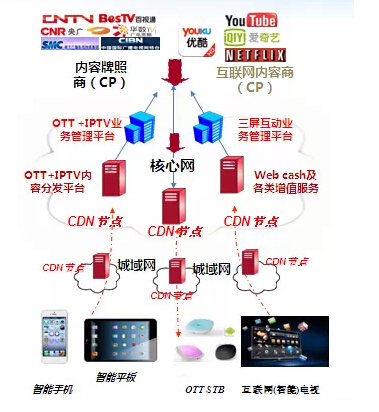 目前传统CDN建设遇到瓶颈:中国电信及联通前期部署的以IPTV为主的传统CDN平台,均为独立封闭建设且无法实现互联互通。而面对目前电信运营商日益庞大的多业务的融合承载,以及多终端的统一接入。传统CDN已无法实现IPTV、互联网、OTT等多种业务模式的融合承载,也无法实现TV屏、PC屏和手机屏等多终端的统一接入。为此需要构建新一代融合开放的智能管道和基于该管道的CDN内容分发网络,来满足用户的海量化和集中化需求。同时服务多类型的终端,提供跨屏支撑业务。从而实现各种媒体业务的快速高效传递。